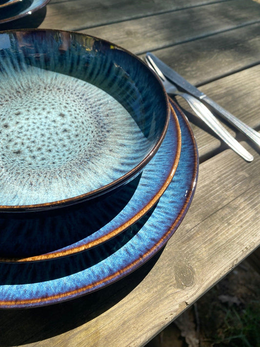 Sumk features a special high-fire reactive glaze to create unique and stylish patterns. A stunning collection of high impact pieces with a unique reactive glaze to make your food look beautiful. Perfect to create a breathtaking table after a long summer day. It combines functional shapes and attractive glazes.