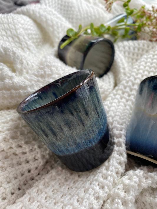 Each item in the collection is a unique work of art, characterized by a special attribute: reactive glass. When exposed to furnace heat, this glass changes to a deep blue color, cloaking each piece in an air of elegance and sophistication.